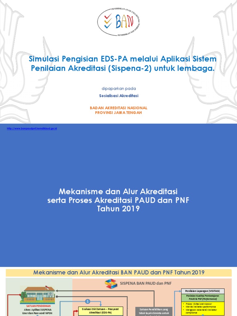 Httpsbanpaudpnfkemdikbudgoidsispena Bagaimana cara download sertifikat akreditasi PAUD. No Provinsi Populasi Satuan Diakreditasi. Pelatihan Calon Pelatih PCP ASESOR Untuk Akreditasi Berkualitas.